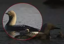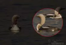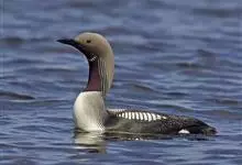 黑喉潜鸟为潜鸟目下的大型水禽,体长56-75厘米,体重雄性3.3-3.8千克,雌性2-3.1千克。个体较红喉潜鸟大,嘴直,颈粗而长,常弯曲成优美的S型。…全部>>