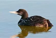 白嘴潜鸟为潜鸟目潜鸟科下的大型水禽,别名黄嘴潜鸟是潜鸟中个体最大者,体长75-100厘米。嘴粗厚而向上翘、黄白色,颈较粗,前额明显的隆起。夏羽头和颈黑色,…全部>>
