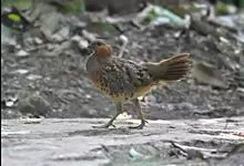 白顶溪鸲是雀形目鸫科的鸟类,体长约19厘米,是黑色及栗色溪鸲。头顶及颈背白色,腰、尾基部及腹部栗色。雄雌同色。亚成鸟色暗而近褐,头顶具黑色鳞状斑纹。叫声为甚哀怨的尖亮上升音“tseeit tseei…全部>>