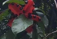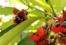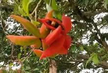 假苹婆是锦葵科苹婆属乔木植物。幼枝被毛;叶椭圆形或披针形,先端骤尖,基部钝或近圆无毛;圆锥花序腋生,花淡红色;蓇葖果鲜红色,长卵圆形或长椭圆形;种子卵圆形黑褐色;花期4-6月。…全部>>