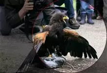 金雕:属于鹰科、雕属的猛禽。体长76-102厘米,翼展达2.3米,体重2-6.5千克。雌雄同色。未成年时,头、颈黄棕色;两翼飞羽除了最外侧三枚外基部均缀有白色,其余身体部分暗褐色;羽尾灰白色,…全部>>