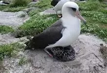 黑脚信天翁为鹱形目信天翁科下的一种大型海鸟, 单型种,无亚种分化。体长79-83厘米。嘴黑色,嘴基和眼下方灰白色,其余全身黑褐色。个别尾上覆羽和尾下覆羽白色,脚黑色,能与短尾信天翁区别。 全部>>