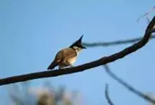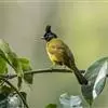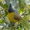 黑冠黄鹎:体长18-21厘米,是一种中等体型偏黄色鹎。整个头、颈、颏、喉黑色,头顶有显著直立的羽冠,黑色,上体褐橄榄黄绿色,下体橄榄黄色。虹膜偏红;嘴及脚黑色。…全部>>