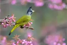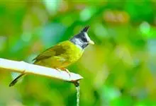 凤头雀嘴鹎:属小型鸟类,体长18-22厘米。嘴粗短、呈象牙色或乳黄色,前额和脸灰色,头顶黑色,有一朝前竖立的黑色羽冠。上体橄榄绿色,下体黄绿色,尾羽黄绿色具宽阔的黑褐色端斑。…全部>>