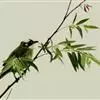 黑头鹎:体长17厘米。是一种中等体型的偏黄色鹎。特征为头辉黑、喉黑而眼蓝。上体黄橄榄色;两翼及尾偏黑,具明显的黄色尾端;下体绿黄色。另一罕见色型为灰色,尾缘白色。与黑冠黄鹎的区别在无羽冠且尾端黄色。…全部>>