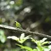 蓝翅叶鹎:小型鸟类,体长15-18厘米。雄鸟通体草绿色,尾蓝绿色,肩和翅亮蓝 色,胸缀有黄色,颏、喉黑色。雌鸟颏,喉蓝绿色。栖息在海拔1500米以下的常绿阔叶林、次生林和林缘疏林灌丛中。…全部>>