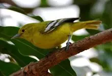 黑翅雀鹎:体重14-19克,体长11.5-16厘米。是树栖性绿色小鸟,外形与叶鹎相似,下体黄色。鸟喙直,翼长而尖,总体羽毛是绿色和黄色相结合,翼上具两道明显近白色横纹,翼近黑而羽缘白。…全部>>
