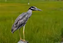 夜鹭是中型涉禽,体长46-60厘米。体较粗胖,颈较短;嘴尖细,微向下曲,黑色;胫裸出部分较少,脚和趾黄色;头顶至背黑绿色而具金属光泽;上体余部灰色;下体白色;枕部披有2-3枚长带状白色饰羽,下垂至背上,…全部>>