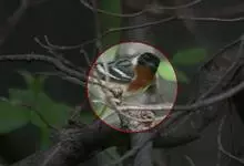 燕雀属小型鸟类,体长14-17厘米。嘴粗壮而尖,呈圆锥状。雄鸟从头至背辉黑色,背具黄褐色羽缘。腰白色,颏、喉、胸橙黄色,腹至尾下覆羽白色,两胁淡棕色而具黑色斑点。两翅和尾黑色,翅上具白斑。…全部>>