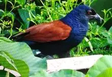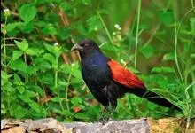 褐翅鸦鹃,是鹃形目鸦鹃科鸦鹃属的鸟类。褐翅鸦鹃的身体为黑色;头颈和胸带蓝紫色金属光泽并具黑亮的羽干纹,下胸至腹部泛金属绿光泽;两翼和肩部为棕栗色,外侧飞羽具暗色羽端,尾羽闪铜绿色光泽;虹膜赤红色,…全部>>