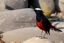 红头咬鹃: 体大,体长约33厘米,体重75-110克。头、颈暗绯红色;背、肩锈褐色。两翅黑色,翅上覆羽和内侧飞羽密被白色细虫蠹斑纹,初级飞羽黑色,外侧具白色羽缘;腰和尾上覆羽较多锈色。中央尾羽深栗色,…全部>>