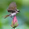 橙胸咬鹃:全长约28厘米。雄鸟头、颈橄榄绿色,上体及中央尾羽栗色;中央尾羽具黑色端,其外侧的2对尾羽黑色,最外3对尾羽基部黑色具白端;翼覆羽有密的黑、白相间横,飞羽黑褐;颏、喉橄榄色,胸橄榄黄,…全部>>