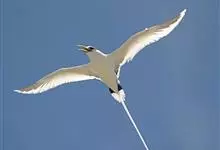 白尾鹲:体重220-410克;体长370-400毫米,加上延长的尾羽为680-990毫米,是一种中型热带海鸟。全身羽毛主要为白色,繁殖期微缀有橙色。眼前和眼后有粗著的黑色斑,像两条粗黑的眼眉。…全部>>