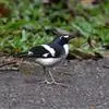 斑背燕尾是鹟科、燕尾属中型鸟类,体长24-25厘米。额至头顶前部白色,其余头、颏、喉、胸黑色,后颈有一白领,背黑色具圆形白色斑点,腰白色,两翅黑色具白色翅斑,尾呈深叉状,黑色、具白色端斑。…全部>>