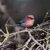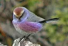 凤头雀莺:小型鸟类。体长9-10厘米,雄鸟呈毛茸茸的紫色和绛紫色,顶冠淡紫灰色,额及凤头白色,尾全蓝。雌鸟喉及上胸白,至臀部渐变成淡紫色,耳羽灰,…全部>>