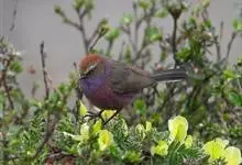 花彩雀莺:体长9-12厘米,是一种毛茸茸偏紫色的雀莺。顶冠棕色,眉纹白。尾长,羽毛松软。前额有一宽阔的眉纹淡黄色,头顶栗色或棕红色,有的具紫蓝色光泽。背灰色,腰和尾上覆羽辉紫蓝色,飞羽灰褐色。…全部>>