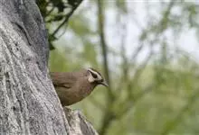 白颊噪鹛是雀形目噪鹛科噪鹛属鸟类,又称土画眉、小画眉、小噪鹃。成鸟额至头顶栗褐色,长眉纹、眼先和颊纹棕白色,眼后至耳羽深褐色,…全部>>