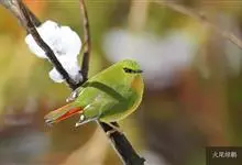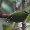 火尾绿鹛是莺科、绿鹛属小型鸟类,体长11-14厘米。上体绿色,头顶至枕具黑色鳞状斑,眼先和眼后黑色,眉纹黄绿色。两翅黑色具黄色和红色翅斑及白色端斑,极为醒目。中央一对尾羽绿色,外侧尾羽鲜红色。…全部>>