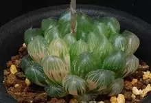 姬玉露 M.B.Bayer)是阿福花科,十二卷属的多年生草本。植株无茎,初为单生,后逐渐呈群生状;叶绿色,肉质,上半段呈透明或半透明状,称为“窗”,用于光合作用。总状花序,小花白色。原产南非,…全部>>