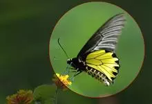 荧光裳凤蝶是凤蝶科裳凤蝶属的一种大型蝴蝶,该物种共有3个亚种。该蝶飞翔的时候姿态优美,前翅黑色,后翅金黄色和黑色交融的斑纹在阳光照射下金光灿灿,显得华贵美丽。幼虫寄主为多种马兜铃属的植物,取食马兜铃…全部>>