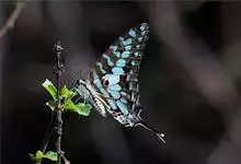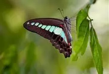 青带凤蝶Graphium sarpedon ,又名青凤蝶,是最普遍的中型凤蝶,飞行速度很快。青带凤蝶的翅膀中央有许多浅蓝色的斑点,很整齐地排列成一条直线。这些斑点由上而下逐渐变大,就像一条青色的带子。全部>>