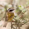 金眼鹛雀是莺科、鹛雀属小型鸟类。体长16-20厘米。头顶和上体棕褐色,两翅表面肉桂红色,尾褐色具明暗相间横斑。眼周金黄色,眼先、眼上、眼下、颊以及颏、喉和上胸概为白色,其余下体茶黄色,脚橙黄色。…全部>>