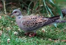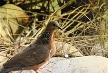 珠颈斑鸠,别名花斑鸠、珍珠鸠、花脖斑鸠、鸪鹪,是鸠鸽科副斑鸠属鸟类。体型中等,体长27~34cm,体重120~205g,雌鸟和雄鸟羽色相似,但雌鸟不如雄鸟羽色亮泽。珠颈斑鸠前额至头顶羽色稍淡,…全部>>