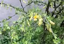 柠条锦鸡儿是豆科锦鸡儿属植物,灌木,有时小乔状,高1-4米;老枝金黄色,有光泽;嫩枝被白色柔毛。羽状复叶有6-8对小叶;托叶宿存;叶轴脱落;小叶披针形或狭长圆形,先端锐尖或稍钝,有刺尖,灰绿色。花梗…全部>>