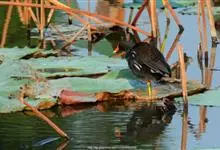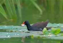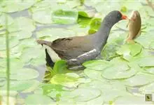 黑水鸡:是鹤形目、秧鸡科的鸟类,共有12个亚种。中型涉禽,体长24-35厘米。嘴长度适中,鼻孔狭长;头具额甲,后缘圆钝;嘴和额甲色彩鲜艳。翅圆形,第2枚初级飞羽最长,或第2枚和第3枚初级飞羽等长,…全部>>