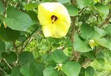 海滨木槿是锦葵科木槿属植物,落叶小乔木,株高3-5米,胸径20厘米,扁球形树冠,枝叶繁盛。厚纸质单叶互生,扁圆形、倒卵形或宽倒卵形,先端钝近平,具短突尖,基部圆形或浅心形,叶缘中上部具细圆齿,…全部>>