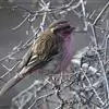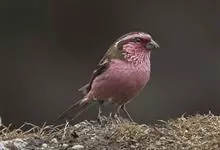 喜马拉雅白眉朱雀:小型鸟类,体长15-17厘米,体重24-35克。额基、眼先深红色,前额和一条长而宽阔的眉纹珠白色沾有粉红色并具丝娟光泽,在暗色的头部极为醒目。头顶至背棕褐或红褐色、具黑褐色羽干纹,…全部>>