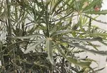 孔雀木 Lowry et Frodin)又名:手树,属伞形目,五加科常绿观叶小乔木或灌木。原产于澳大利亚和太平洋群岛。叶面革质,暗绿色,状似细长的手指,具粗齿锯的叶缘,呈放射状着生,交错排列。…全部>>