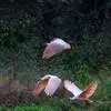 朱鹮是鹈形目鹮科朱鹮属的鸟类动物。其雄鸟通体白色,羽干及两翅与尾等均沾染粉红色;颈项上有很多长矛状羽毛,形成羽冠,耸立时非常夺目;嘴长而向下曲,呈黑色,先端朱红,脚的裸露部分亦呈亮红色。雌鸟羽色略同,…全部>>