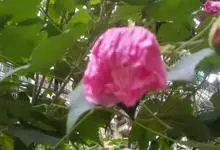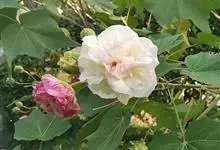 木芙蓉,锦葵科木槿属落叶灌木或小乔木。小枝上有细绒毛;叶片为卵状心形,托叶为披针形,常早落;花单生,花萼为钟形,花冠初为白色或淡红色,后逐渐变为深红色;果实为扁球形,有淡黄色的毛附着。花期8到10月。…全部>>