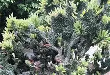 麒麟掌,是大戟科大戟属多年生植物。为金刚纂的带化变异变种。麒麟掌的株乳汁丰富;它的茎圆柱状,上部多分枝,绿色;叶互生,稀少,常生于嫩枝顶端脊上,倒卵形、倒卵状长圆形或匙形,顶端钝圆,具小凸尖,全缘,…全部>>