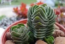 锦晃星是景天科、石莲花属多肉植物。多年生小灌木状多浆植物,灰绿色卵状倒披针形肥厚肉质叶轮状互生,全缘,椭圆尖头,长3-4厘米,宽2-2.5厘米,厚约1厘米,玲凉季节阳光下,叶端及上缘呈红色。…全部>>
