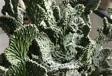 麒麟掌,是大戟科大戟属多年生植物。为金刚纂的带化变异变种。麒麟掌的株乳汁丰富;它的茎圆柱状,上部多分枝,绿色;叶互生,稀少,常生于嫩枝顶端脊上,倒卵形、倒卵状长圆形或匙形,顶端钝圆,具小凸尖,全缘,…全部>>