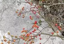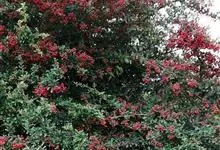 火棘 H. L. Li)是蔷薇科火棘属常绿灌木,老枝呈暗褐色;叶片呈倒卵形,边缘有钝锯齿,齿尖向内弯,两面皆无毛;叶柄短,无毛或嫩时有柔毛;花序是复伞房状,花瓣呈白色近圆形;果球近圆形,…全部>>