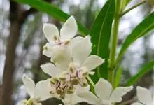 唐棉,株形直立,全株具白色乳汁;叶:线形似柳叶,色浓绿,背面淡绿色,对生;花:繖形花序,腋生,乳白色下垂状,花期秋至隔年春季。全部>>