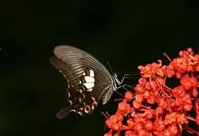 玉斑凤蝶Papilio helenus 别名白纹凤蝶,是凤蝶科凤蝶属美凤蝶亚属大型种类。雌雄同型;体翅皆黑色,后翅正面中室外有3个并列的白色斑,亚外缘有1列模糊的新月形红色斑,…全部>>