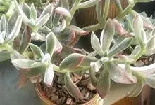 褐斑伽蓝是景天科伽蓝菜属的多年生多肉类植物,茎直立,多分枝,叶生于枝上,肉质叶片匙形,上面密被白色绒毛,下部全缘,叶缘上部有缺刻,缺刻处有深褐或棕色斑块。褐斑伽蓝原产非洲的马达加斯加岛。…全部>>