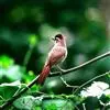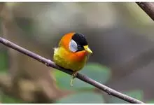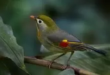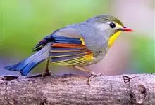 银耳相思鸟小型鸟类,体长14~18厘米。头顶黑色,耳羽银灰色,前额橙黄色;外侧飞羽橙黄色,基部朱红色,极为鲜艳、醒目。尾圆形,尾上、尾下覆羽朱红色,尾暗灰褐色,外侧尾羽橙黄色,其余上体橄榄绿或橄榄黄色。…全部>>