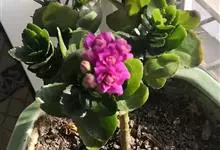 江户紫,景天科伽蓝菜属草本植物,是多年生草本花卉。花白色,但栽培中很少能见到花,常作观叶植物栽培。…全部>>