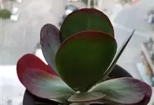 唐印为景天科伽蓝菜属的多年生肉质草本植物。植株中型,株高50厘米,宽20厘米,多分枝;叶片肉质,对生,卵形,全缘,先端钝圆,叶片淡绿色至灰绿色,表面被有厚厚的白粉,光照充足时,叶缘呈红色;圆锥花序,…全部>>