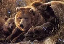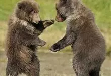 棕熊是熊科熊属哺乳动物。体形健硕,肩背隆起,身后长有一条短尾。毛色多为棕褐色或棕黄色;老年呈银灰色;幼年为棕黑色。野生条件下寿命为20—30年。棕熊分布广泛,主要分布在欧亚大陆和北美,…全部>>