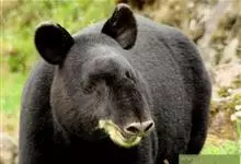 马来熊,是食肉目熊科马来熊属哺乳动物。体胖颈短,眼睛和耳朵小;头部短圆;全身乌黑光滑;鼻唇周为棕黄色,裸露无毛;眼圈为灰褐色,趾基部连有短蹼;胸斑中央有一个毛旋,颈部周围的一圈皮肤极松弛,…全部>>