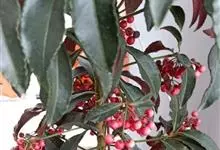 朱砂根是报春花科紫金牛属植物,又名铁凉伞、红铜盘、百两金、大罗伞、开喉箭等,为常绿小灌木,高1~2米,茎粗壮,无毛,除侧生特殊花枝外,无分枝,叶片革质或坚纸质,椭圆形、椭圆状披针形至倒披针形,…全部>>