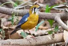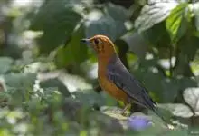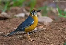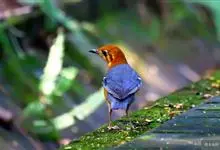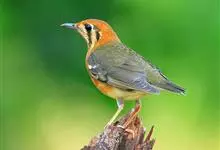 橙头地鸫是鸫科、地鸫属中型鸟类,体长18-22厘米。整个头、颈和下体橙栗色,其余上体包括两翅和尾蓝灰色或橄榄灰色,翅上多具白色翅斑。虹膜褐色或棕褐色,嘴黑褐色或黑色,脚橙黄色或肉黄色。特征极明显。…全部>>