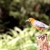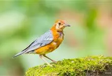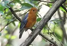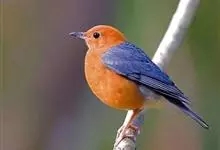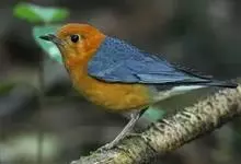 橙头地鸫是鸫科、地鸫属中型鸟类,体长18-22厘米。整个头、颈和下体橙栗色,其余上体包括两翅和尾蓝灰色或橄榄灰色,翅上多具白色翅斑。虹膜褐色或棕褐色,嘴黑褐色或黑色,脚橙黄色或肉黄色。特征极明显。…全部>>