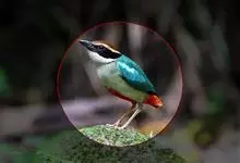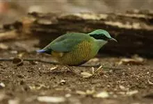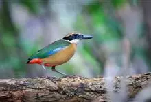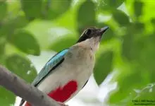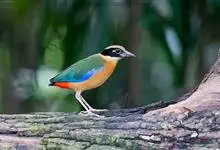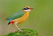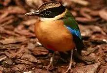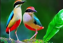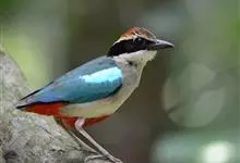 蓝翅八色鸫是雀形目八色鸫科的鸟类。体长17-20厘米,体重类约48-70克,体型圆胖,尾短,腿长,以身体具有红、绿、蓝、白、黑、黄、褐、栗等鲜艳夺目,丰富艳丽的色彩而得名,是很有观赏价值的鸟类。主要…全部>>